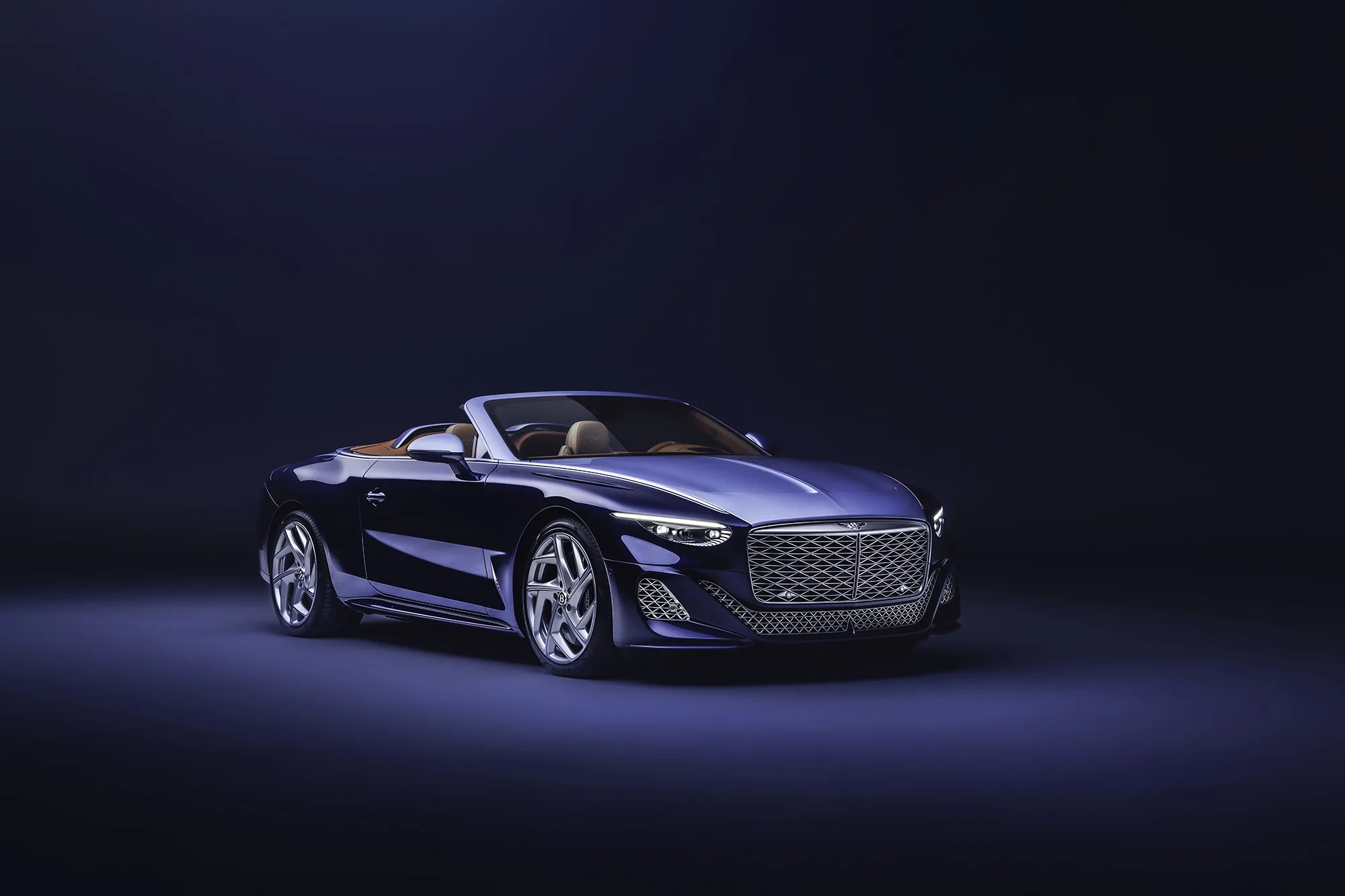 İç mekânda sıcak sonbahar tonları; açık kahverengiler, karamel dokular ve Breslow Blue vurgularla harmanlanıyor. Kontrast dikişler; koltuklardan torpidoya, başlıklardan tonneau kapağına kadar tüm kabin boyunca devam ediyor.