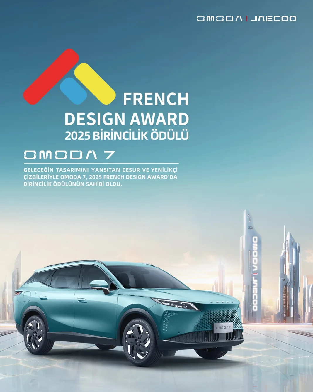 Otomotiv dünyasında tasarım ve teknoloji her geçen gün daha ileri bir noktaya taşınıyor. Yenilikçi modelleriyle dikkat çeken OMODA markası, şimdi de D-SUV segmentindeki yeni modeli OMODA 7 ile sektöre damgasını vuruyor. Üstelik bu çarpıcı model, uluslararası tasarım sahnesinde şimdiden büyük bir başarıya imza attı: Fransız Tasarım Ödülü 2025 kapsamında altın madalya kazandı!